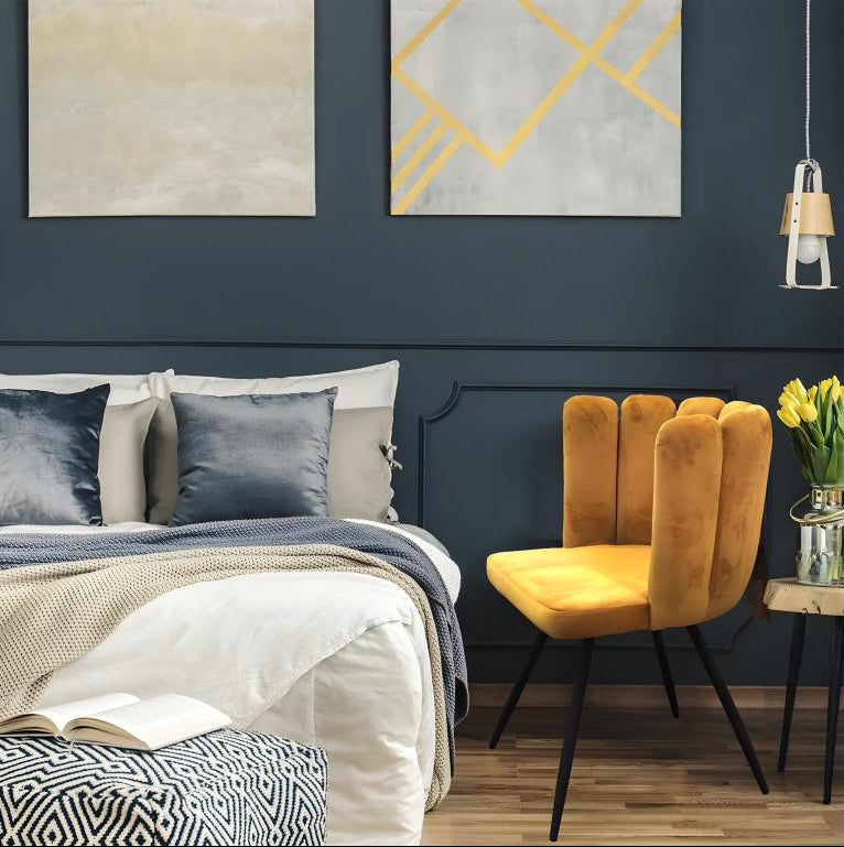 Homzora - Set of 6 Yellow Velvet Chairs