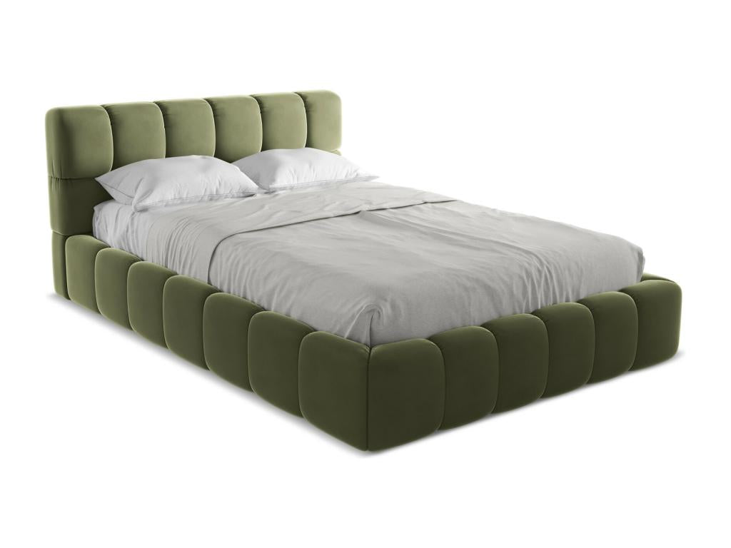 Velvet storage bed 140x200 - olive - Homzora